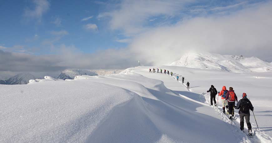 Zudem muss die körperliche Fitness stimmen: „Technisch gesehen ist Schneeschuhwandern nicht schwieriger als normales Wandern, aber im winterlichen Gelände und bei der Kälte doch auch anspruchsvoll. Eine körperliche Grundkondition muss da sein, gleich wie beim Wandern“, so Wanderführer Michael Tschöll.